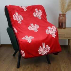 Koc polarowy góralski wzór - Czerwony w białe parzenice
