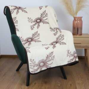 Koc polarowy łowicki wzór - beżowy w brązowe kwiaty łowickie