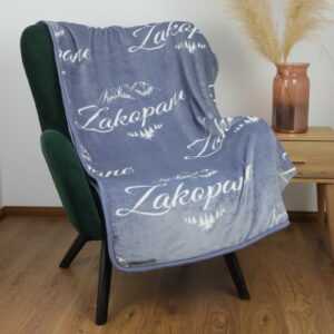 Koc polarowy Zakopane - czarny z białym napisem 220/200